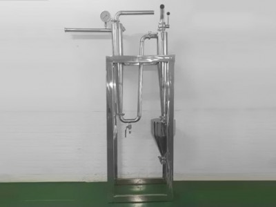 该设备结构简单,设计先进,用料讲究,锥形旋流管由卫生级镜面不锈钢板材制造,经久耐用,高速分离,除砂除杂率高,是佰康精密机械的独到之处。其工作时,乳液(淀粉乳)被泵入旋流除砂器内,并在除砂器内高速旋转,由于离心力的作用,较轻的物料(淀粉)通过溢流管排出,较重的物料(砂粒等)在离心力的作用下,沿着圆锥形的旋流管内壁向下从底部排出。向下旋流的砂粒收集于集砂斗内,由手工或自动的排砂阀排出。